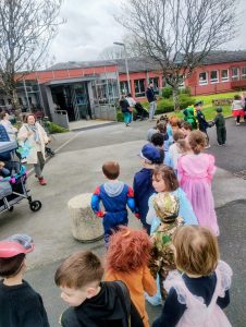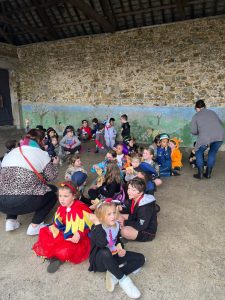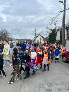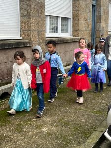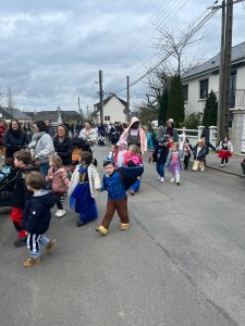Ce mardi 10 mars, pour la mi-Carême, nous avons fait Carnaval à l’école! Tous les élèves étaient ravis de s’arrêter aux Loriettes afin de saluer les résidents qui les attendaient. Le défilé a poursuivi jusqu’à l’église puis est revenu dans la cour.