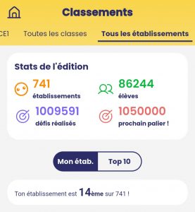 Sur 741 établissements participant, l’école Saint Jean-Baptiste se classe 14ème!