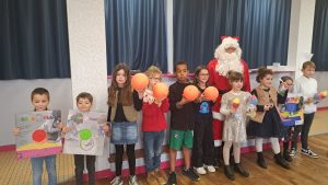 L’après-midi a eu lieu l’assemblée des élèves. A cette occasion, chaque classe a présenté quelque chose fait lors de la période. Les classes de Gwénaëlle et Soazig ont chanté, les classes de Servane et Margaux ont présenté leurs bricolages de Noël et les classes de Laetitia et Mathilde ont exposé les bonnes nouvelles de 2025 ainsi qu’un bricolage pour les CM1-CM2. Ces bonnes nouvelles seront affichées au self du collège dès janvier.