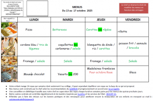 Menu maternelle du 13 au 17 octobre 2025