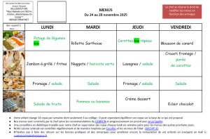 Menu maternelle du 24 au 28 novembre 2025