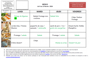 Menu maternelle du 9 au 13 février 2026